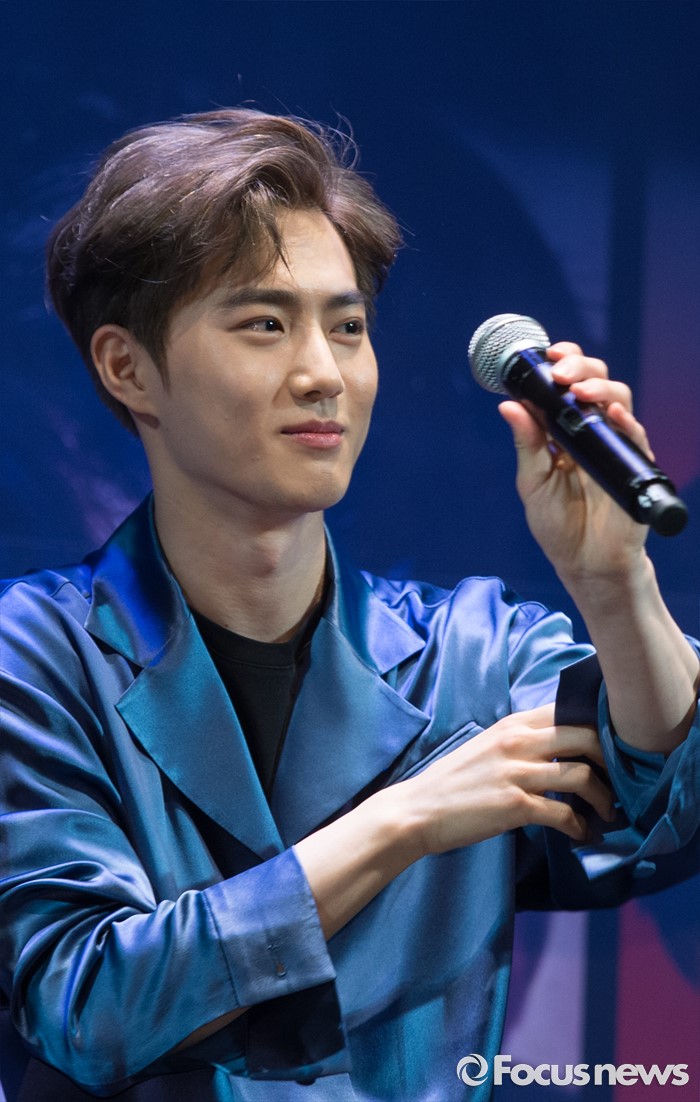 (서울=포커스뉴스) 8일 오전 서울 강남구 코엑스 아티움에서 열린 아이돌 그룹 엑소의 3집 앨범 'EX'ACT' 발표 쇼케이스에 참석한 멤버 수호가 인사말을 하고 있다.