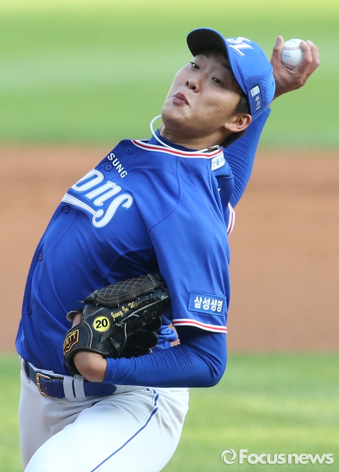 (서울=포커스뉴스) 8일 서울 잠실구장에서 열린 2016 프로야구 삼성-LG 경기에서 1회말 삼성 선발투수 정인욱이 투구하고 있다.