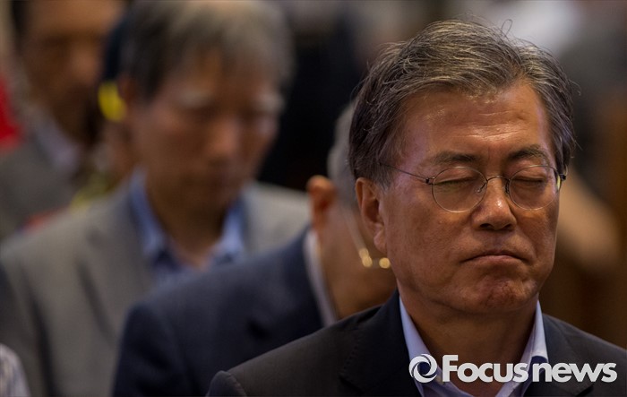 (서울=포커스뉴스) 10일 오전 서울 중구 정동 대한성공회 서울주교좌성당에서 열린 6월항쟁 29주년 기념식에 참석한 문재인 전 더불어민주당 대표가 기도하고 있다.