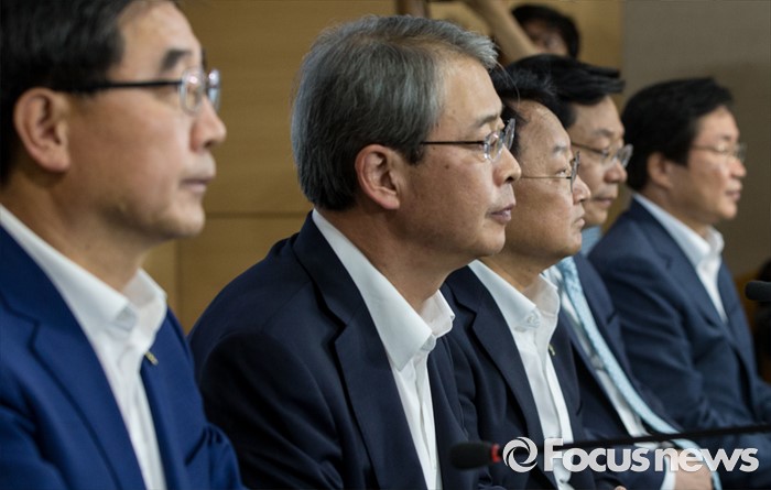 (서울=포커스뉴스) 8일 오전 서울 종로구 정부서울청사에서 이기권(왼쪽부터) 고용노동부 장관, 임종룡 금융위원장, 유일호 부총리 겸 기획재정부 장관, 주형환 산업통상자원부 장관, 김영석 해양수산부 장관이 구조조정 추진현황 및 계획에 대해 발표 전 생각에 잠겨있다.