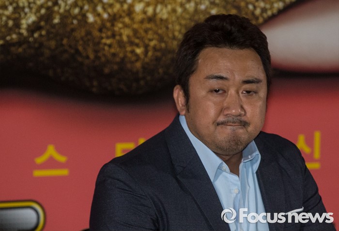(서울=포커스뉴스) 9일 오후 서울 중구 메가박스 동대문에서 열린 영화 '굿바이 싱글' 언론시사회에 참석한 배우 마동석이 취재진을 바라보고 있다.