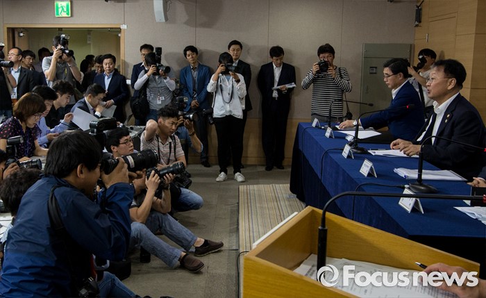 (서울=포커스뉴스) 8일 오전 서울 종로구 정부서울청사에서 유일호 부총리 겸 기획재정부 장관이 구조조정 추진현황 및 계획에 대해 발표하고 있다.