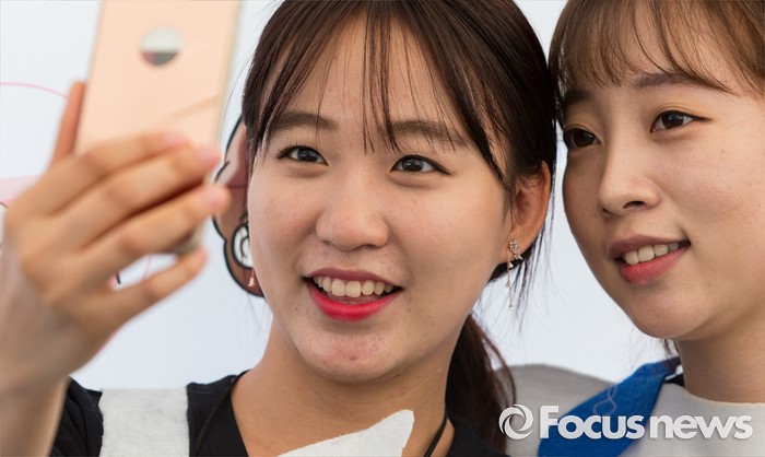 (서울=포커스뉴스) 9일 오전 서울 청계광장에서 열린 제1회 서울시민 구강보건의 날 기념행사에 참석한 진행요원들이 건치를 뽐내며 셀카를 찍고 있다.
