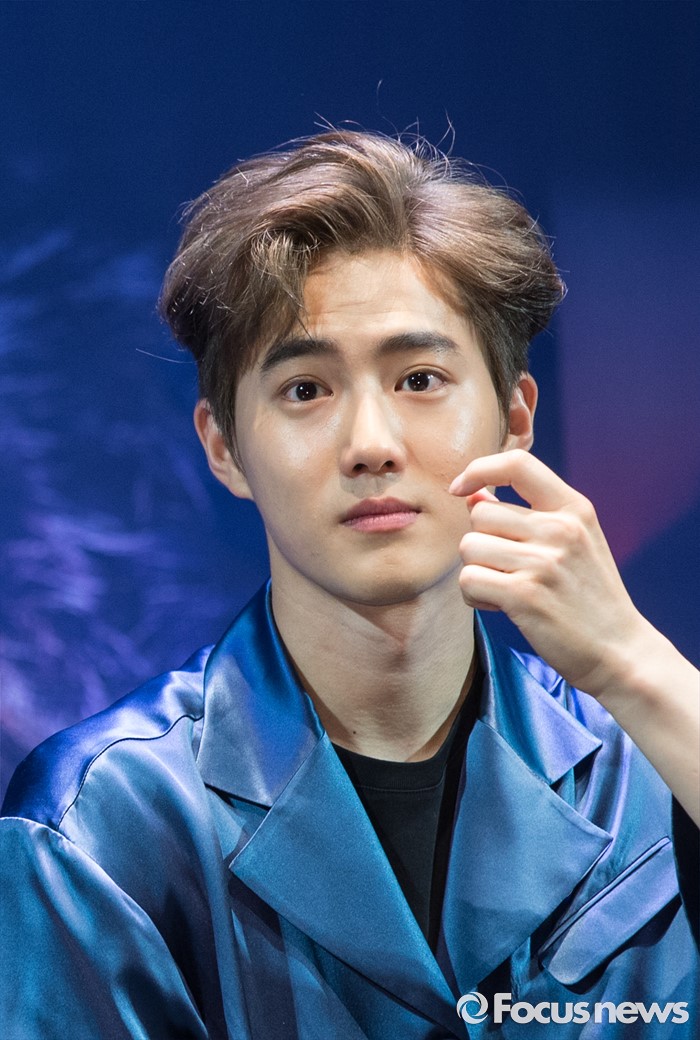 (서울=포커스뉴스) 8일 오전 서울 강남구 코엑스 아티움에서 열린 아이돌 그룹 엑소의 3집 앨범 'EX'ACT' 발표 쇼케이스에 참석한 멤버 수호가 질문을 받고 있다.