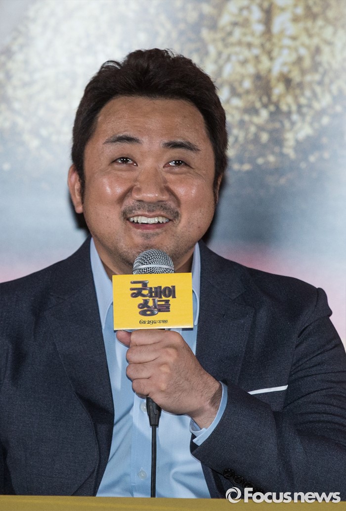 (서울=포커스뉴스) 9일 오후 서울 중구 메가박스 동대문에서 열린 영화 '굿바이 싱글' 언론시사회에 참석한 배우 마동석이 인사말을 하고 있다.