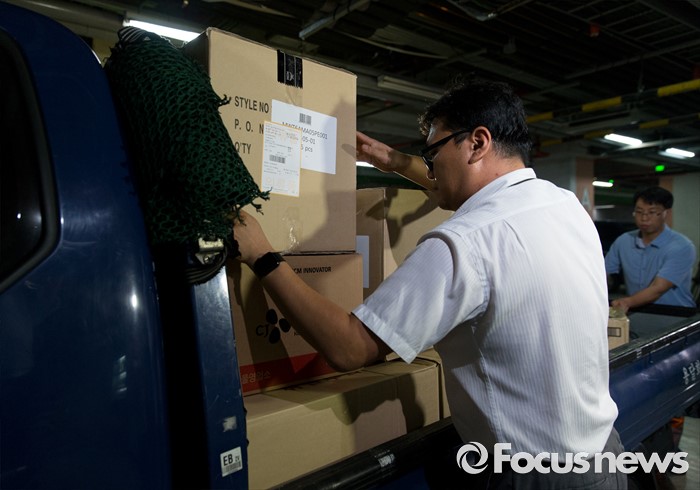 (서울=포커스뉴스) 10일 오후 서울 중구 소공동 롯데호텔에서 검찰 수사관들이 롯데그룹 정책본부 등 계열사와 신동빈 롯데그룹 회장 집무실에 대한 압수수색을 마치고 호텔을 나서고 있다.