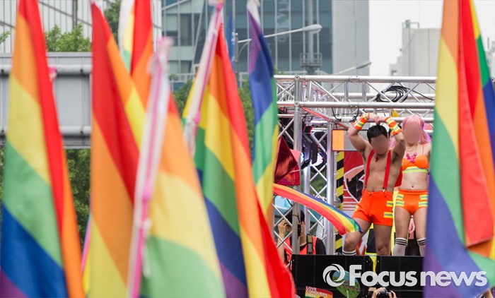 (서울=포커스뉴스) 11일 오후 제17회 퀴어문화축제 참가자들이 서울광장을 출발해 을지로일대를 지나며 퀴어퍼레이드를 벌이고 있다.