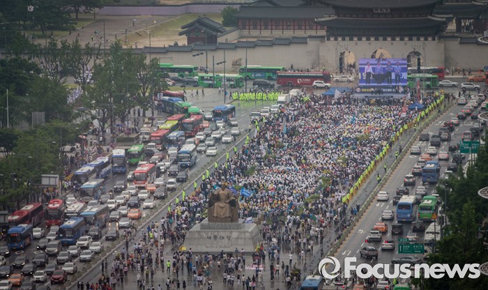 (서울=포커스뉴스) 11일 오후 서울 광화문광장이 지방재정 개악 저지 지방자치 수호 시민문화제에 참석자들로 붐비고 있다.