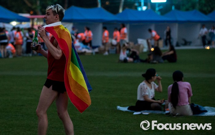 (서울=포커스뉴스) 11일 오후 서울광장에서 열린 제17회 퀴어문화축제가 마친 후 참가자들이 휴식을 즐기고 있다.
