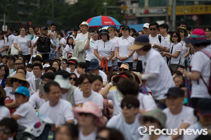 (서울=포커스뉴스) 12일 오전 서울 중구 서울시청 광장에서 열린 제 7회 나라사랑 고궁걷기 대회에 시민들이 참가하고 있다.