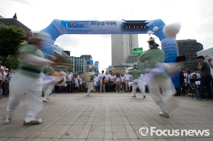 (서울=포커스뉴스) 12일 오전 서울 중구 서울시청 광장에서 열린 '제7회 나라사랑 고궁걷기 대회'에서 풍물놀이가 열리고 있다.