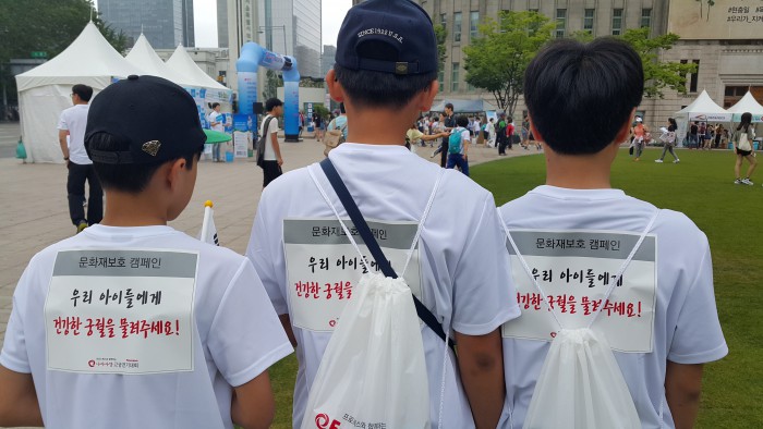 참가 청소년들은 '우리 아이들에게 건강한 궁궐을 물려주세요' 캠페인 문구를 부착하고 고궁을 걸으며 역사공부 뿐 아니라 궁궐 지킴이로도 나섰다. 이들을 보며 참가자들은 문화재 보호의 중요성을 자연스럽게 되새길 수 있었다.