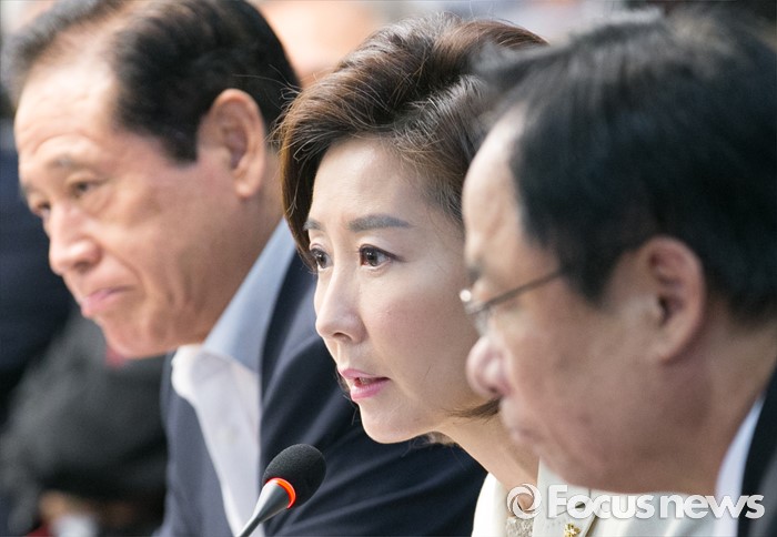 (서울=포커스뉴스) 13일 오전 서울 여의도 국회 의원회관에서 '개헌, 우리 시대의 과제'란 주제로 열린 14차 국가전략포럼에 참석한 나경원 새누리당 의원이 인사말을 하고 있다. 왼쪽부터 배덕광, 나경원, 이주영 의원.
