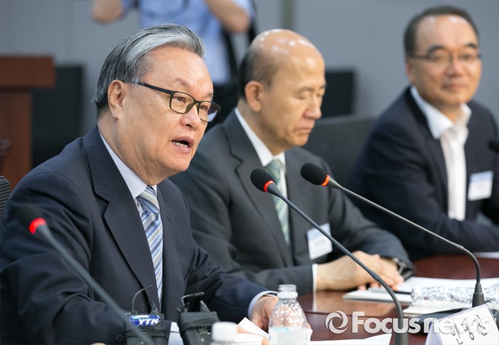 (서울=포커스뉴스) 13일 오전 서울 여의도 국회 의원회관에서 '개헌, 우리 시대의 과제'란 주제로 열린 14차 국가전략포럼에 참석한 인명진 목사가 발언하고 있다.