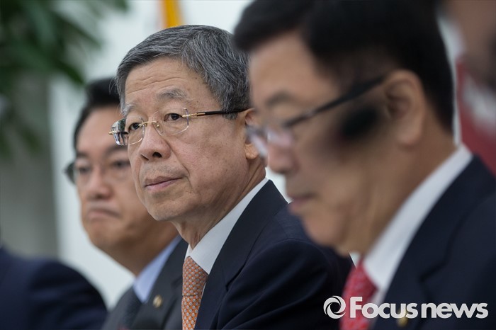 (서울=포커스뉴스) 김희옥(가운데) 새누리당 비상대책위원장이 13일 오전 서울 여의도 국회에서 열린 혁신비상대책위원회의에 참석하고 있다.