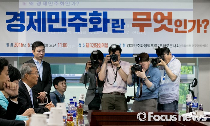 (서울=포커스뉴스) 김종인 더불어민주당 비대위 대표가 13일 오전 서울 여의도 국회 의원회관에서 열린 '경제민주화란 무엇인가?' 간담회에 참석해 인사말을 하고 있다.