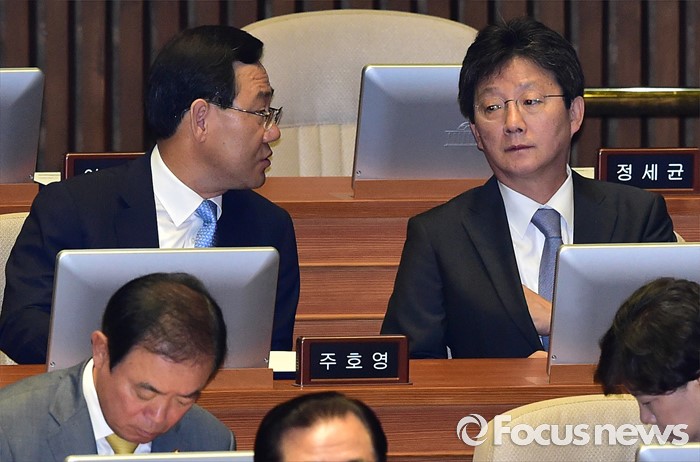 (서울=포커스뉴스) 13일 오전 서울 여의도 국회에서 열린 20대 국회 개원식에 참석한 유승민(오른쪽), 주호영 무소속 의원이 대화하고 있다.