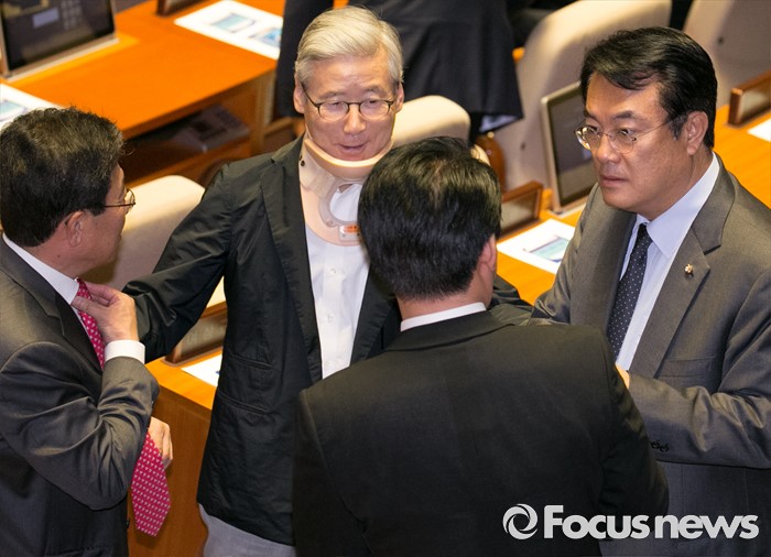 (서울=포커스뉴스) 13일 오후 서울 여의도 국회에서 상임위원장 선출을 위해 열린 343회 국회(임시회) 2차 본회의에 참석한 정진석 새누리당 원내대표가 의원들과 대화하고 있다.