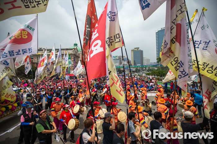 (서울=포커스뉴스) 13일 오후 서울 용산구 서울역광장에서 '제 29주년 6.13 정신계승 전국노점상대회'가 열리고 있다. 6.13 대회는 1988년 6월 13일 억눌린 노점상의 울분이 처음 세상 밖으로 터져 나온 날을 기념하기 위한 날이며 이번 집회에서는 노점관리대책 중단, 노점 생존권 보장, 기본법 및 노점상보호 특별법 제정 등을 요구했다.