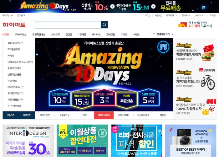 (서울=포커스뉴스) 롯데하이마트는 오는 22일까지 10일간 온라인쇼핑몰에서 상반기 총결산 할인행사 '어메이징 데이(amazing day)'를 진행한다고 13일 밝혔다.
