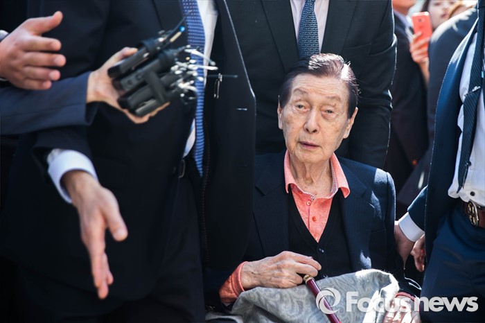 재계 관계자는 “신 전 부회장이 이번 롯데 압수수색을 통해 신 회장의 경영실책을 지적하면서 반전을 꾀해볼 수도 있겠지만 결국 고육지책(苦肉之策)이다”라며 “법원이 신 회장이나 신 전 부회장이 아닌 제3자를 지정하더라도 경영권 분쟁에는 영향을 미치긴 할 것이다. 신 회장의 원리더 체재가 쉽게 흔들리진 않을 것”이라고 말했다.(서울=포커스뉴스) 신격호 롯데그룹 총괄회장이 16일 오후 서울 종로구 서울대병원으로 들어서고 있다. 신회장은 재판부 지정 정신감정 병원인 서울대 병원에 입원, 성년후견인 지정을 위한 감정을 약 2주간 받게 된다.2016.05.16 성동훈 기자2016.06.10 이서우 기자