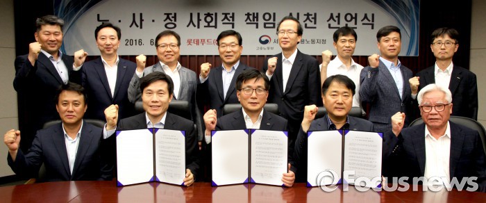 (서울=포커스뉴스) 롯데푸드는 지난 13일 서울 양평동 본사에서 롯데푸드 노동조합, 고용노동부 서울남부지청과 사회적 책임 실천 협약을 체결했다고 14일 밝혔다.