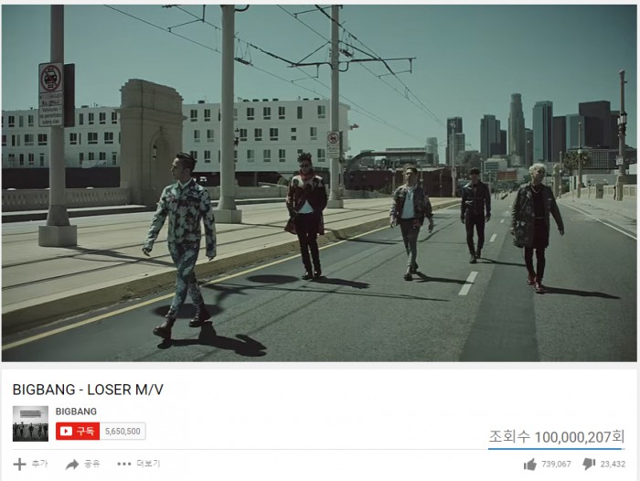 (서울=포커스뉴스) 보이그룹 빅뱅 '루저(LOSER)' 뮤직비디오가 유튜브 조회수 1억뷰를 넘어섰다. 한국 보이그룹 최초 기록을 또하나 보유하게 됐다.