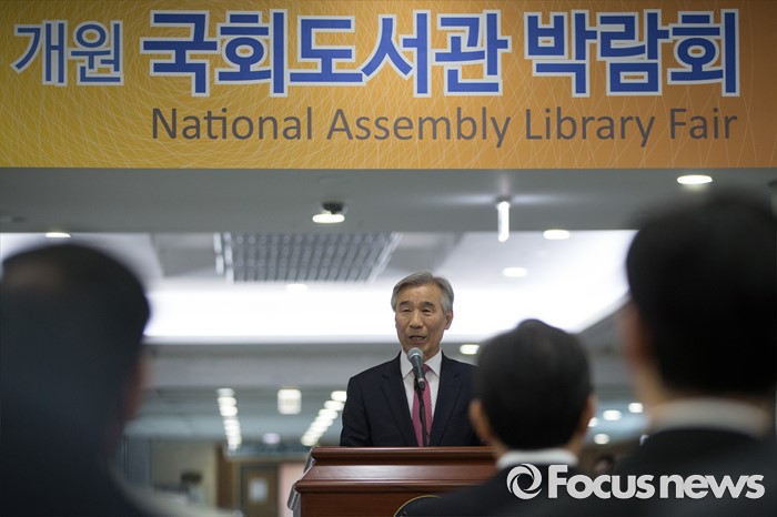 (서울=포커스뉴스) 이은철 국회도서관 관장이 14일 오후 서울 여의도 국회 의원회관에서 열린 국회도서관 박람회 개막식에 참석해 인사말을 하고 있다.