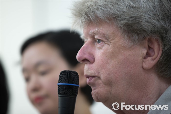 (서울=포커스뉴스) 예술가 모임 '플럭서스' 초기 멤버인 에릭 앤더슨 작가가 14일 오후 서울 중구 서울시립미술관에서 열린 백남준 10주기 추모전-천경자 1주기 추모전 기자간담회에 참석, 예술가 백남준을 회고하고 있다. '백남준∞플럭서스' 추모전은 내달 31일(일)까지 열리며 '천경자 1주기 추모전 '바람은 불어도 좋다. 어짜피 부는 바람이다' 는 8월 7일까지 열리게 된다.