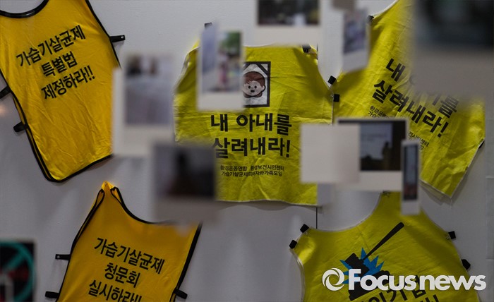 (서울=포커스뉴스)14일 오후 서울 중구 서울시민청에서 '2000일간의 기록-가습기살균제 피해 사진전'이 열리고 있다. 가습기살균제 피해자와 가족모임과 환경보건시민센터가 주관하는 이번 전시는 23일까지 열리며 가습기살균제 피해자 사진과 항의행동 기록, 희생자에 대한 추모 기록 등이 전시된다.