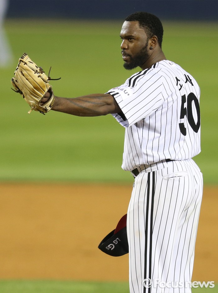 (서울=포커스뉴스) 14일 서울 잠실구장에서 열린 2016 프로야구 NC-LG 경기 7회초 1사 1루에서 LG 투수 소사가 NC 1루주자 김종호의 2루 도루에 대한 합의판정 결과가 나온 후 주심을 향해 인사하고 있다.