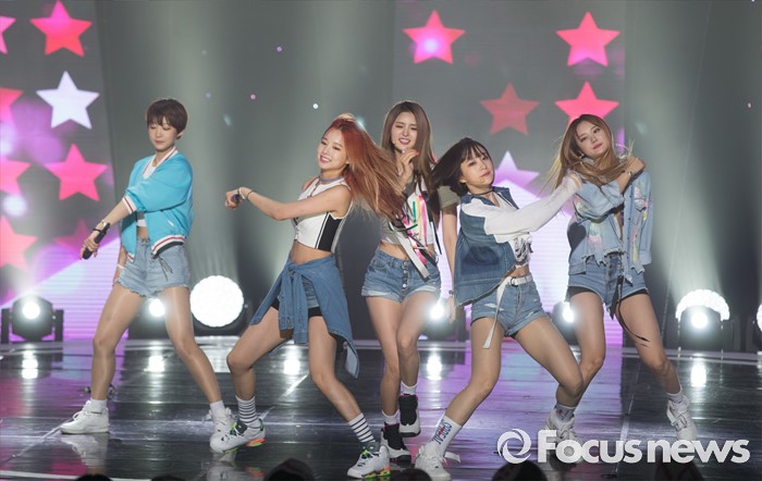 (서울=포커스뉴스) 14일 오후 서울 마포구 SBS프리즘 타워에서 열린 SBS MTV '더쇼' 생방송 현장에 참여한 걸그룹 EXID의 멤버들이 무대를 선보이고 있다.