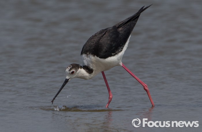 (인천=포커스뉴스) 장다리물떼새가영종도 매립지내 습지에서 작은 물고기와 수서곤충을 채식하고 있다.