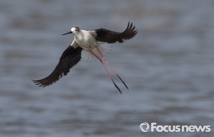 (인천=포커스뉴스) 장다리물떼새 번식처 인근에 황조롱이가 나타나자 ,먹이활동을 하던 수컷이 잽싸게 날고 있다.