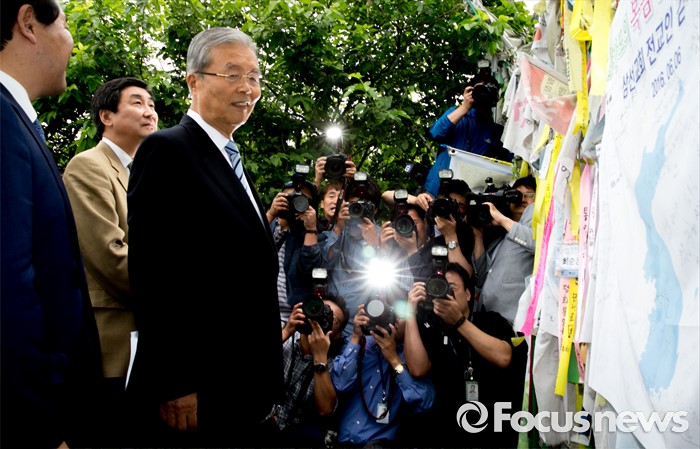 (파주=포커스뉴스) 15일 오전 경기도 파주 임진각 통일전망대에서 더불어민주당 비상대책위원회의를 마친 김종인 비대위 대표와 의원들이 자유의 다리를 찾아 둘러보고 있다.