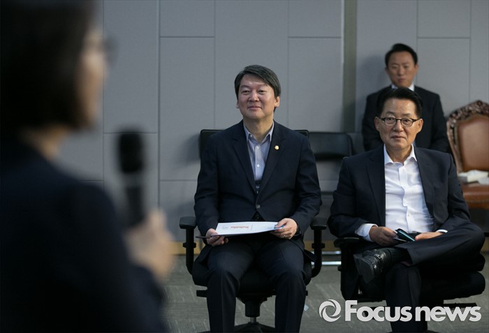 | △ 워크숍 강연 듣는 안철수-박지원 |