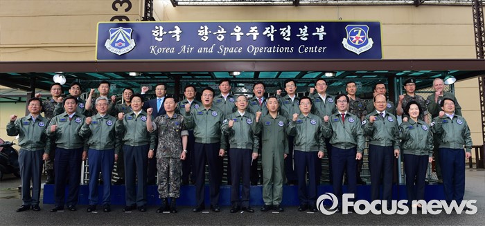 (오산=포커스뉴스) 김희옥 새누리당 혁신비대위원장과 정진석 원내대표 등 의원들이 15일 오전 경기도 오산 공군작전사령부를 방문해 이왕근 공군 작전사령관 등 군 관계자들과 기념촬영을 하고 있다.