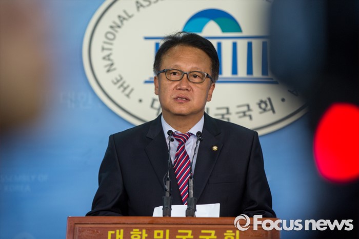 (서울=포커스뉴스) 민병두 더불어민주당 의원이 15일 오전 서울 여의도 국회에서 조선해운산업 부실화 진상 규명 위한 국정조사 추진을 촉구하는 기자회견을 하고 있다.