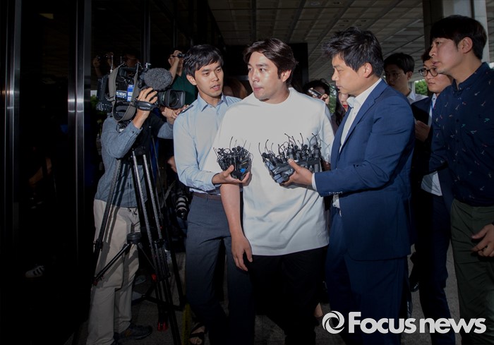 (서울=포커스뉴스) 음주운전 사고를 일으킨 그룹 슈퍼주니어의 멤버 강인(31·본명 김영운)이 15일 오후 서울중앙지방검찰청에 조사를 받기 위해 출석하고 있다.