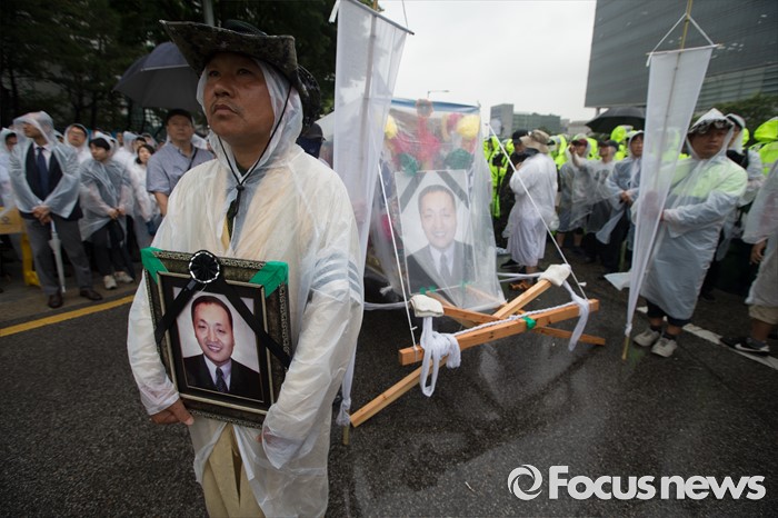 | △ 현대기아차 본사 앞에 도착한 유성기업 고 한광호 영정 |
