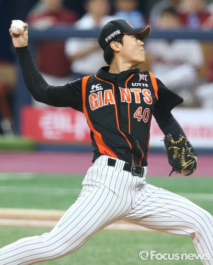 (서울=포커스뉴스) 15일 서울 고척 스카이돔 구장에서 열린 2016 프로야구 롯데-넥센 경기에서 롯데 선발투수 박진형이 투구하고 있다.