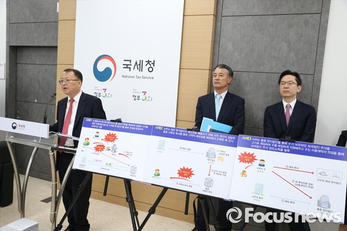 (세종=포커스뉴스) 한상영 국세청 조사국장이 15일 오전 정부세종 2청사 국세청 기자실에서 지난 3월 역외소득·재산 자진신고 기간이 종료함에 따라 소득이나 재산을 해외에 은닉하고도 자진신고에 응하지 않은 역외탈세 혐의자 36명에 대해 세무조사를 착수했다고 밝히고 있다. <사진제공=국세청>