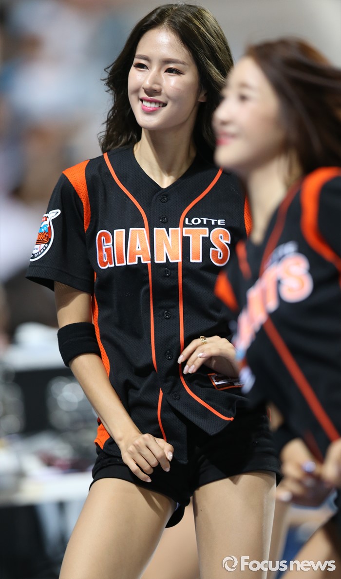 (서울=포커스뉴스) 15일 서울 고척 스카이돔 구장에서 열린 2016 프로야구 롯데-넥센 경기에서 롯데 치어리더 박기량이 승리를 부르는 응원을 하고 있다.