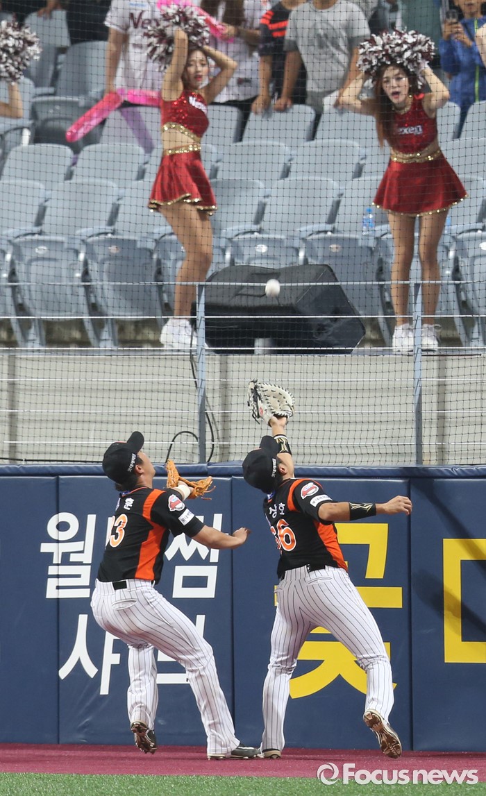 LG와 NC의 잠실경기, kt와 한화의 수원경기는 우천 취소됐다. 취소된 경기는 추후 편성된다.(서울=포커스뉴스) 15일 서울 고척 스카이돔 구장에서 열린 2016 프로야구 롯데-넥센 경기 3회말 롯데 1루수 김상호와 2루수 정훈이 넥센 박정음의 파울 플라이를 펜스 앞에서 잡으려 하고 있다. 넥센 치어리더의 시선이 애처롭다. 2016.06.15 우정식 기자 (서울=포커스뉴스) 15일 서울 고척 스카이돔 구장에서 열린 2016 프로야구 롯데-넥센 경기에서 전 날의 패배를 설욕한 롯데 선수들이 마운드에 모여 하이파이브하며 승리의 기쁨을 함께하고 있다.2016.06.15 우정식 기자 (서울=포커스뉴스) 4일 서울 잠실구장에서 열린 2016 프로야구 두산-LG 경기 6회초 1사 1,3루에서 두산 김재환이 우월 3점 홈런을 치고 덕아웃에서 니퍼트와 포옹하고 있다. 2016.05.04 우정식 기자