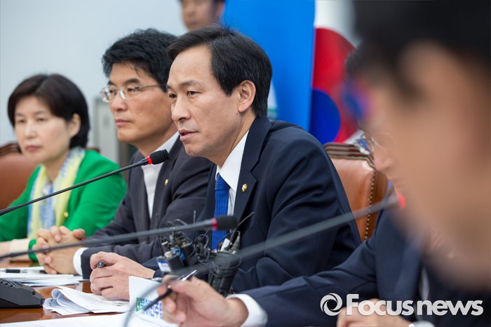 (서울=포커스뉴스) 우상호 더불어민주당 원내대표가 16일 오전 서울 여의도 국회에서 열린 정책조정회의에 참석해 모두발언 하고 있다.