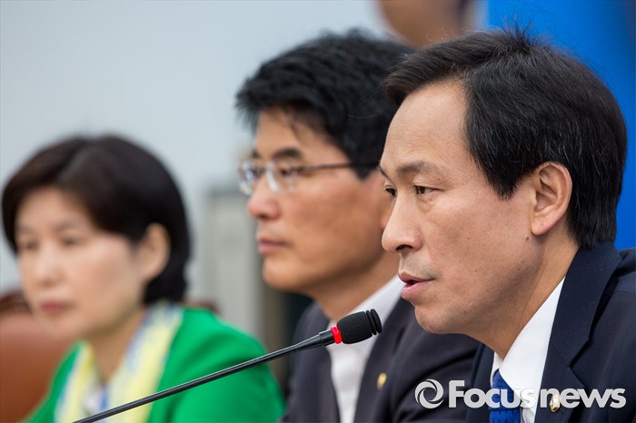 (서울=포커스뉴스) 우상호 더불어민주당 원내대표가 16일 오전 서울 여의도 국회에서 열린 정책조정회의에 참석해 모두발언 하고 있다.