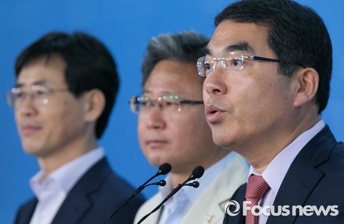 (서울=포커스뉴스) 양기대 광명시장, 채인석 화성시장 등 경기도 기초자치단체장들이 16일 오전 서울 여의도 국회 정론관에서 누리과정 갈등 해결을 위한 입법 촉구 기자회견을 하고 있다.