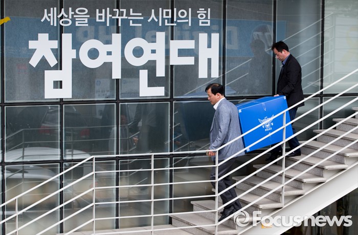 (서울=포커스뉴스) 공직선거법 위반 혐의를 수사하고 있는 경찰이 16일 오후 서울 종로구 참여연대 압수수색을 마치고 차량으로 압수품을 옮기고 있다.