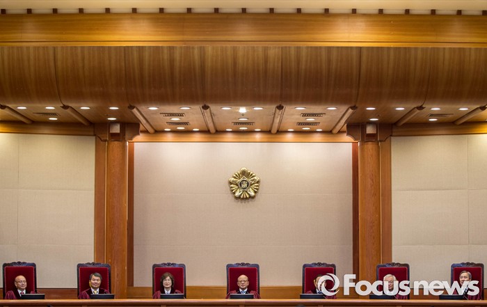 (서울=포커스뉴스) 16일 오후 서울 종로구 헌법재판소 대심판정에서 박한철(중앙) 헌법재판소장이 공공기관에 개인정보 요구 형사소송법 제199조 제2항 등 헌법소헌의 공개 변론을 위해 자리해 있다.