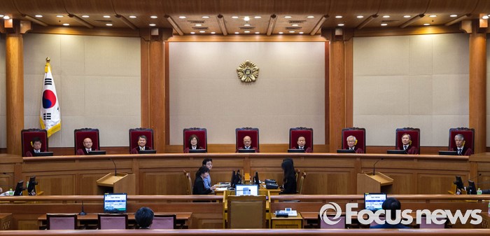 (서울=포커스뉴스) 16일 오후 서울 종로구 헌법재판소 대심판정에서 박한철(중앙) 헌법재판소장이 공공기관에 개인정보 요구 형사소송법 제199조 제2항 등 헌법소헌의 공개 변론을 위해 자리해 있다.